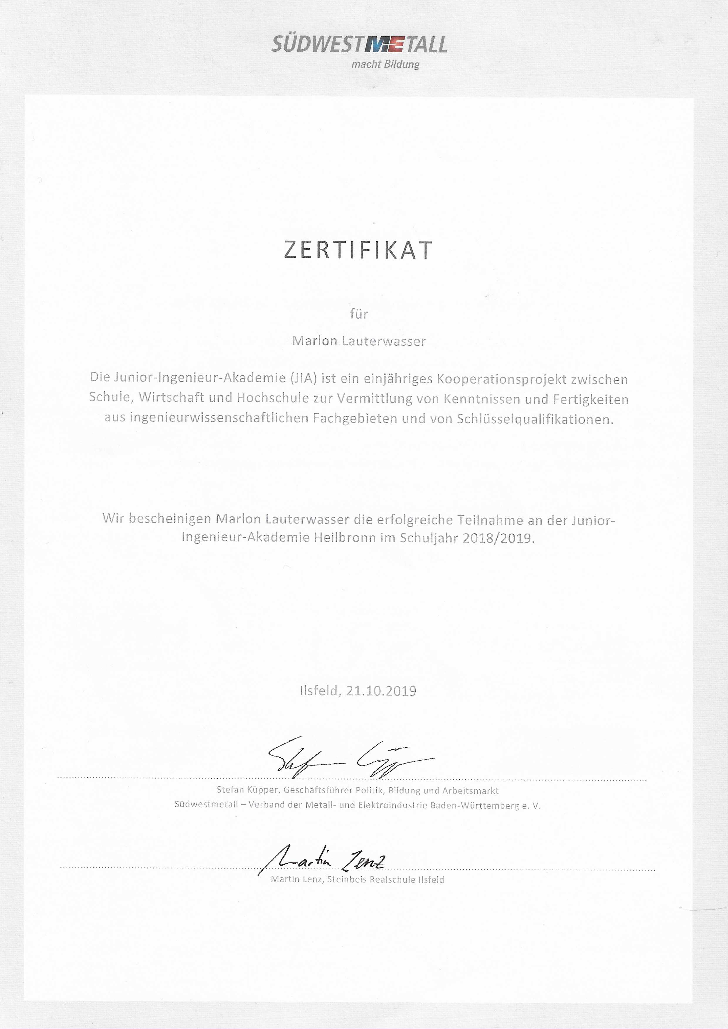 JIA - Jugend Ingieneurs Akademie 2019 – 2020