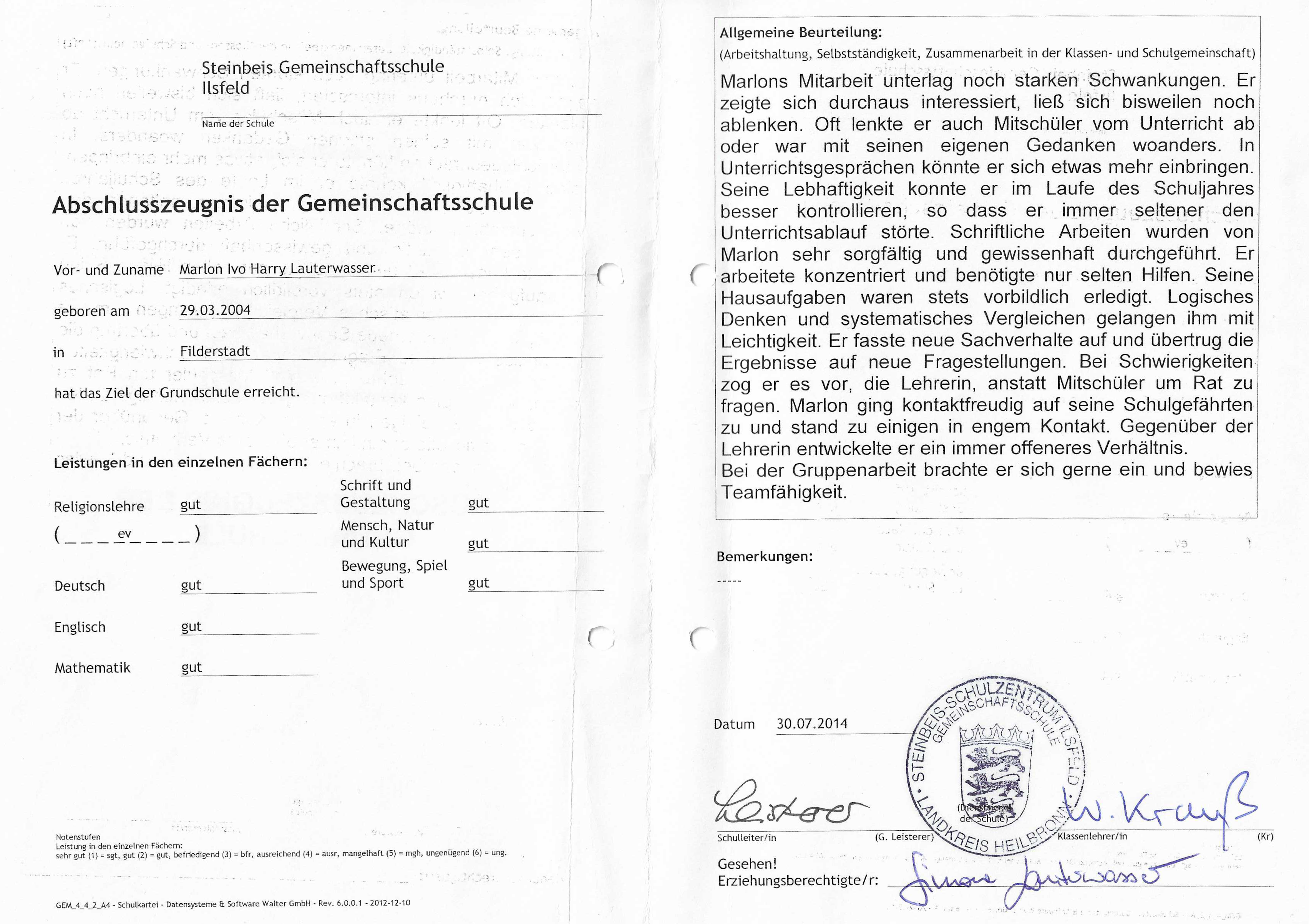 Steinbeis Grundschule Ilsfeld 2010 – 2014